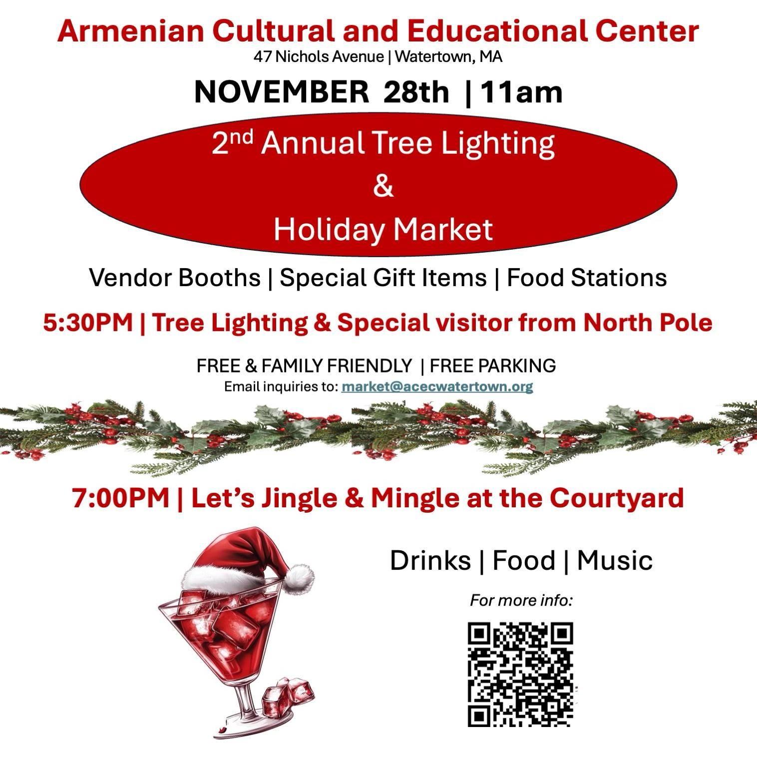 Watertown, MA – The Armenian Cultural and Educational Center (ACEC) is delighted to invite the Greater Boston community to its annual Holiday Celebration at ACEC Watertown! Enjoy a full day of festive fun, cultural connection, and seasonal traditions for all ages.